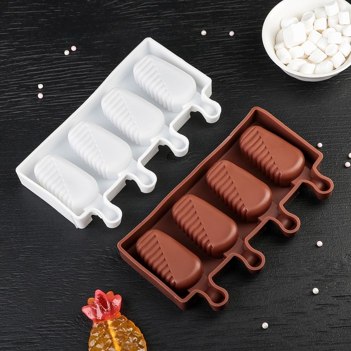 Форма для мороженого Доляна «Эскимо в глазури», силикон, 18,5×12,3×2,5 см, 4 ячейки, цвет МИКС