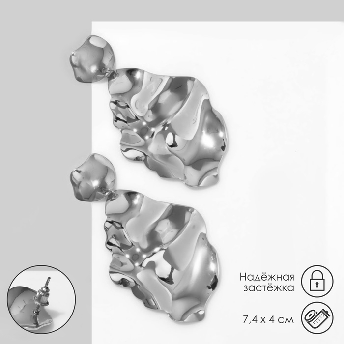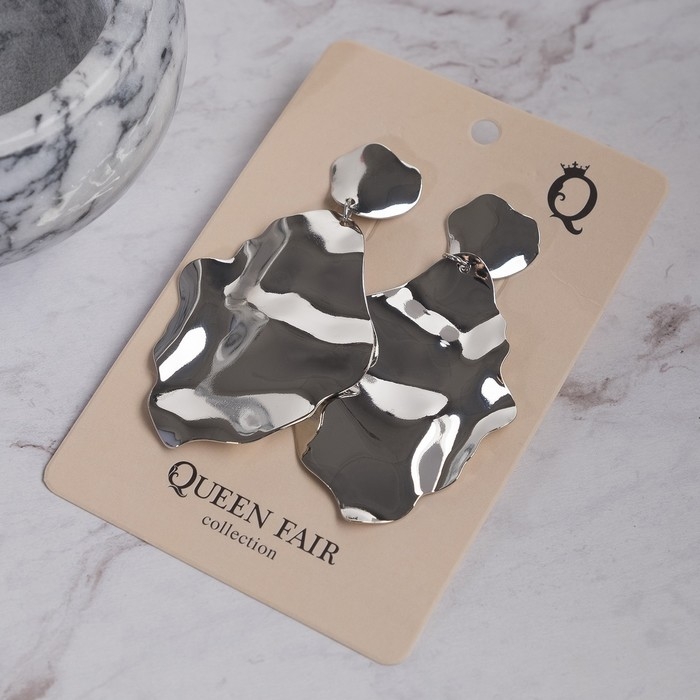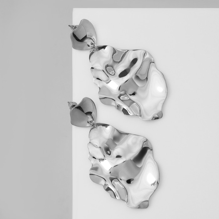 Серьги металл «Атмосфера» кувшинка, цвет серебро