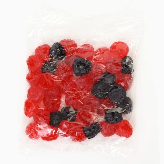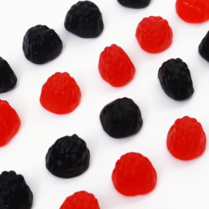 Состав: глюкозный сироп, сахар, агент желирующий – желатин, регулятор кислотности – лимонная кислота (Е330), ароматизаторы: «Малина», «Ежевика», «Барбарис», красители пищевые: кармуазин (Е122), понсо 4R (Е124), индигокармин (Е132), черный блестящий PN (Е151), глазирователь: растительное масло, воск карнаубский.