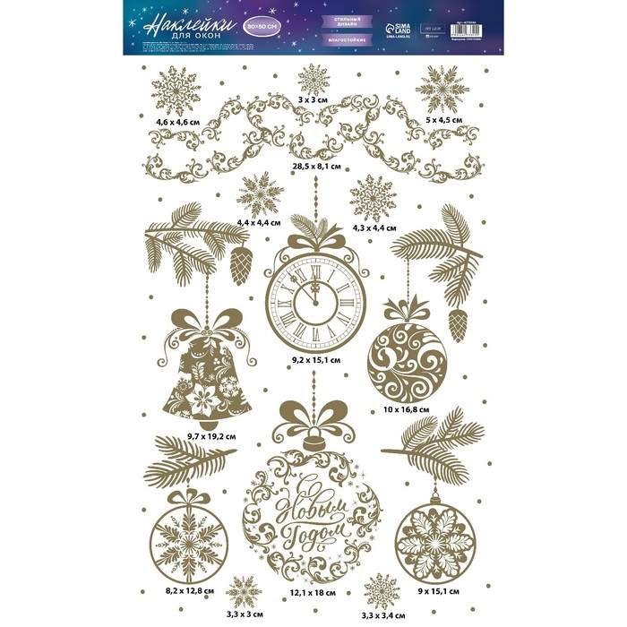Наклейки новогодние виниловые с фольгированием «C Новым годом», 30 х 50 см, Новый год
