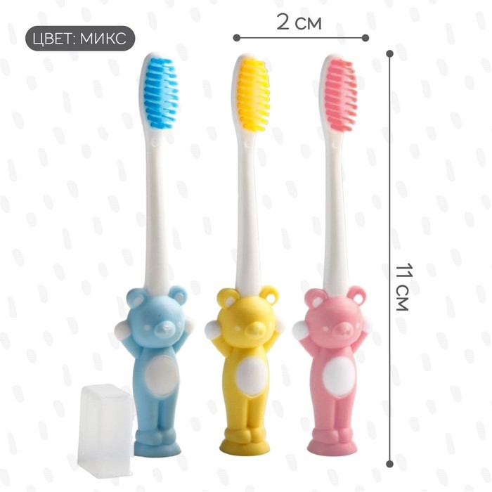 Детская зубная щетка на присоске «Мишка», с защитным колпачком (нейлон), цвет МИКС