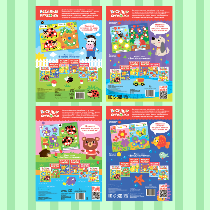 Наклейки обучающие набор «Весёлые кружочки», 4 шт. по 16 стр., формат А4