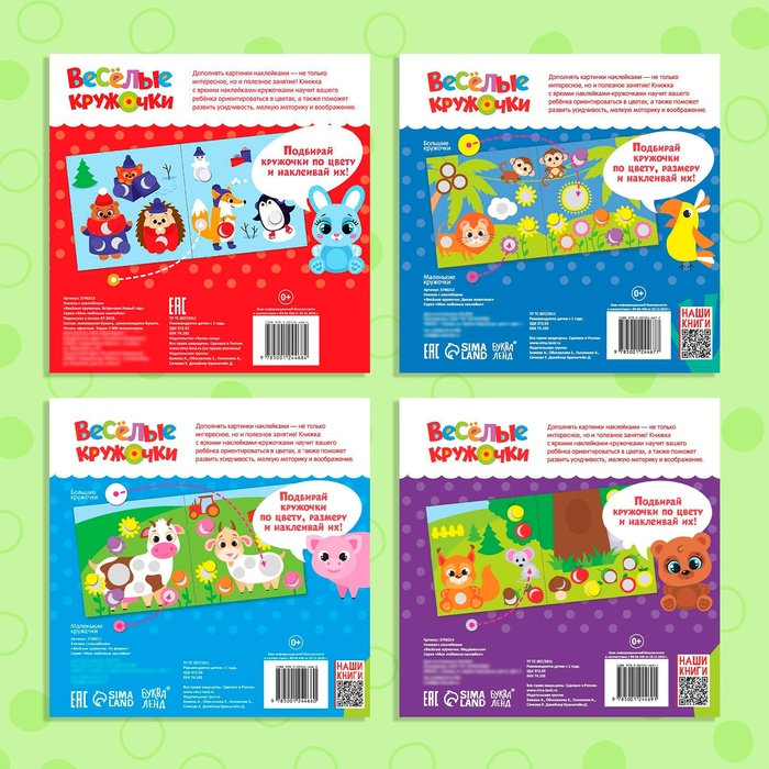 Наклейки обучающие набор «Весёлые кружочки», 4 шт. по 16 стр., формат А4