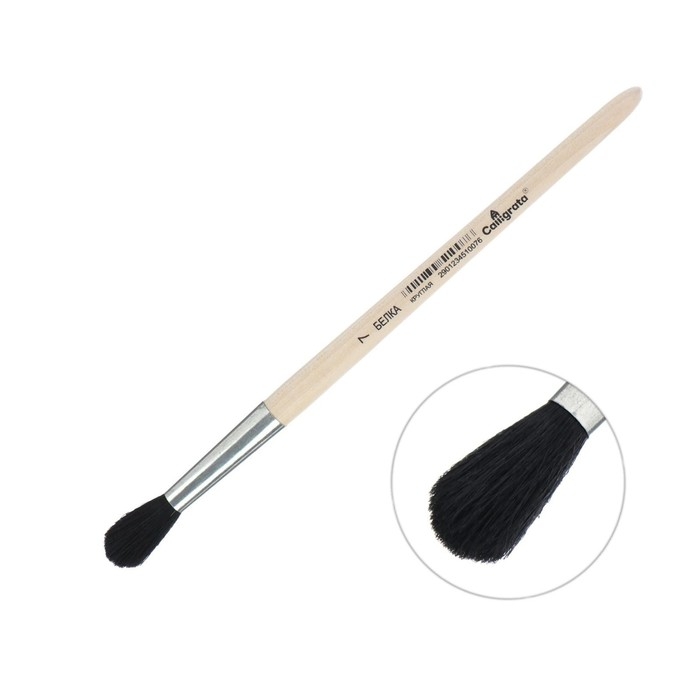 Кисть для рисования, Белка круглая № 7 (диаметр обоймы 7 мм; длина волоса 24 мм), деревянная ручка, Calligrata