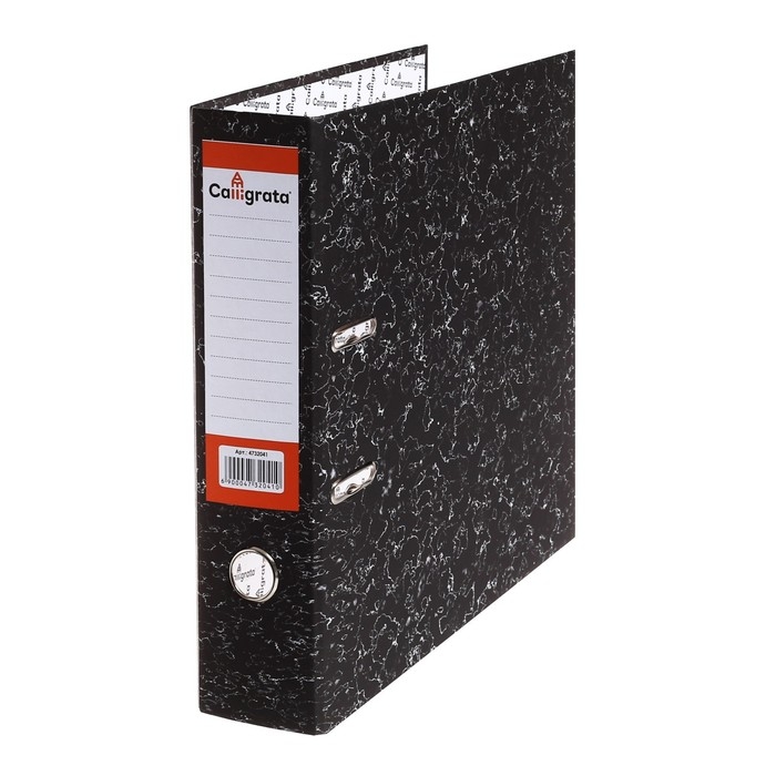 Папка-регистратор 75 мм, А4, Calligrata, эконом мрамор, черная, МИКС