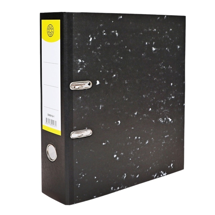 Папка-регистратор Calligrata эконом, формата А4+ – отличный помощник для хранения и систематизации документов. Ширина корешка – 75 мм. Папка чёрного цвета вмещает до 500 листов стандартной плотности. Размер – 290 х 320 х 75 мм. Папка-регистратор с вертикальной ориентацией выполнена из твёрдого картона толщиной 1,5 мм и имеет внешнее покрытие из офсетной бумаги «мрамор». Внутренняя часть папки также выполнена из офсетной бумаги. Изделие имеет металлический арочный механизм и поставляется в собранном виде