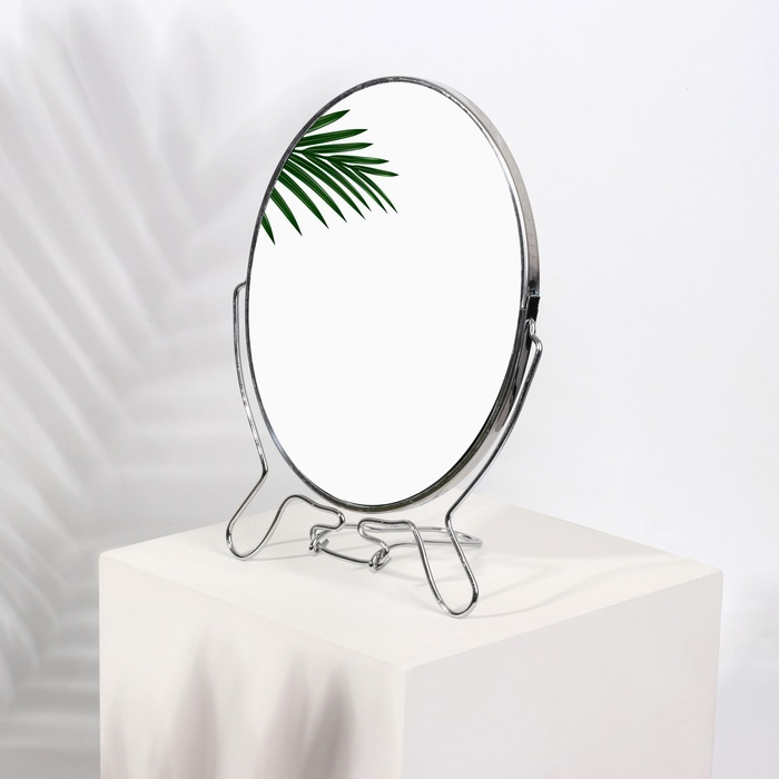 Зеркало настольное - подвесное «Овал», двустороннее, с увеличением, зеркальная поверхность 13,5 × 19 см, цвет серебристый