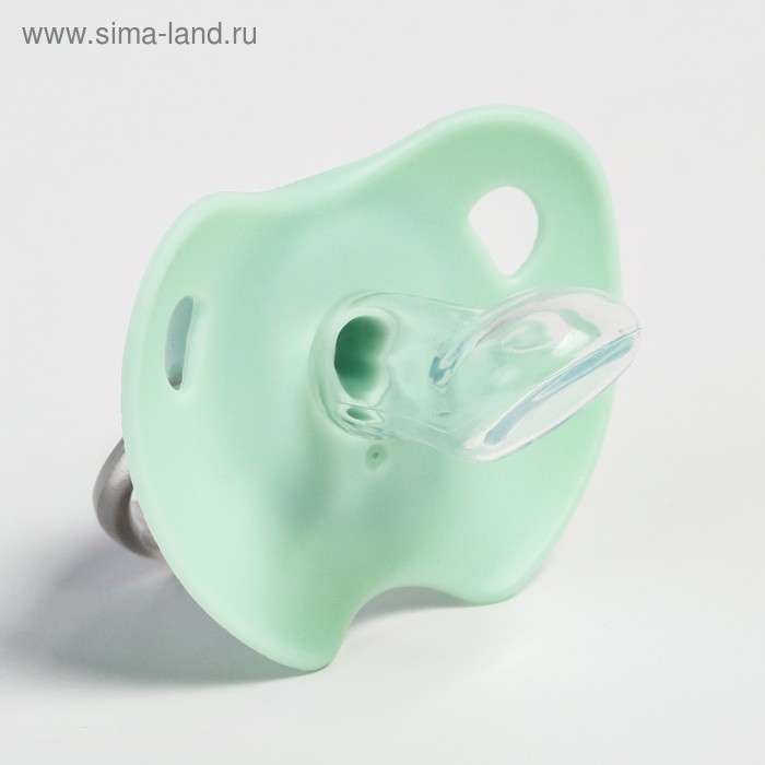 Соска пустышки силиконовая и имеет анатомическую форму диска, специальные вентиляционные отверстия на пустышке улучшают циркуляцию воздуха не раздражают кожу малыша и не оставляют следов и опрелостей. Создана для удовлетворения естественного сосательного рефлекса малышей. Пустышка анатомической формы имеет немного сплюснутый сосок, благодаря чему прилегает к языку.