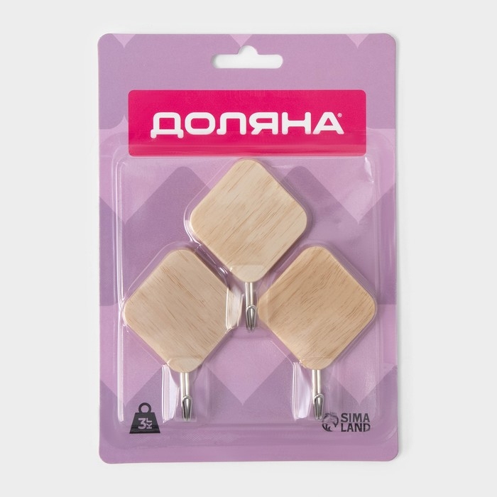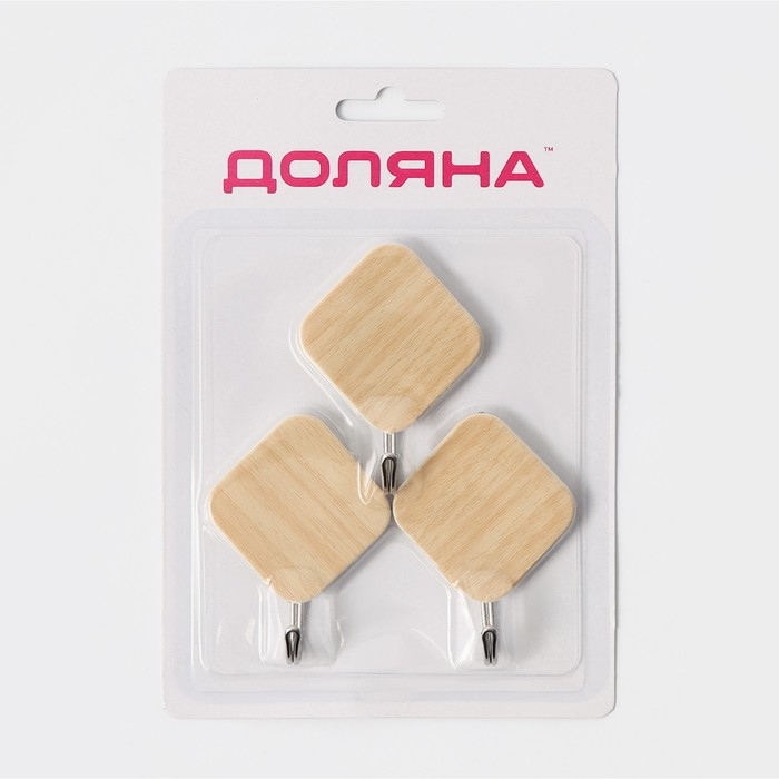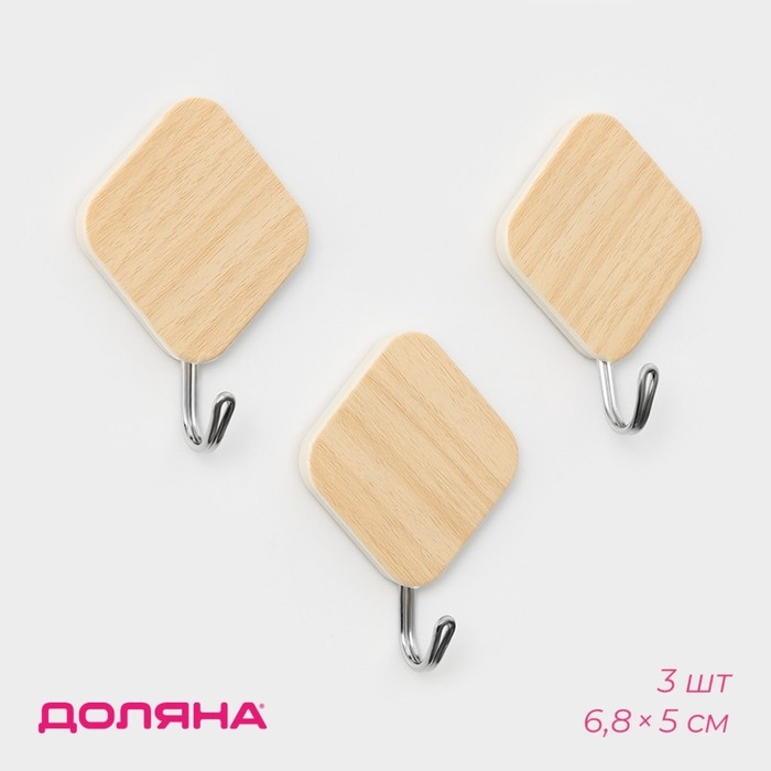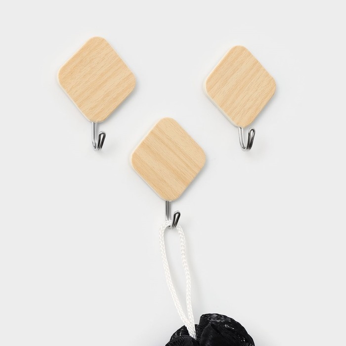 Крючки самоклеящиеся Доляна «Ромб», 3 шт, цвет светлое дерево