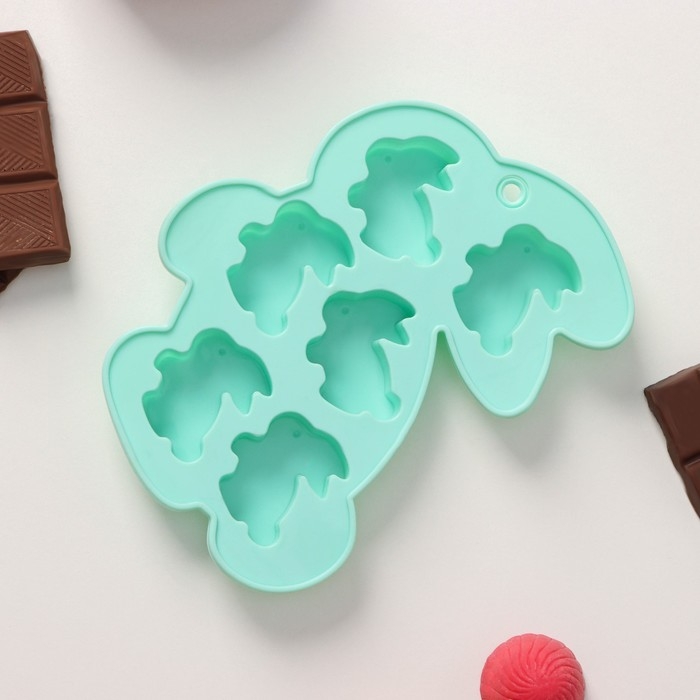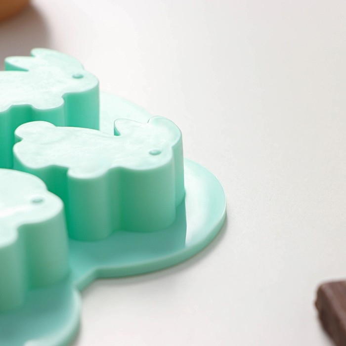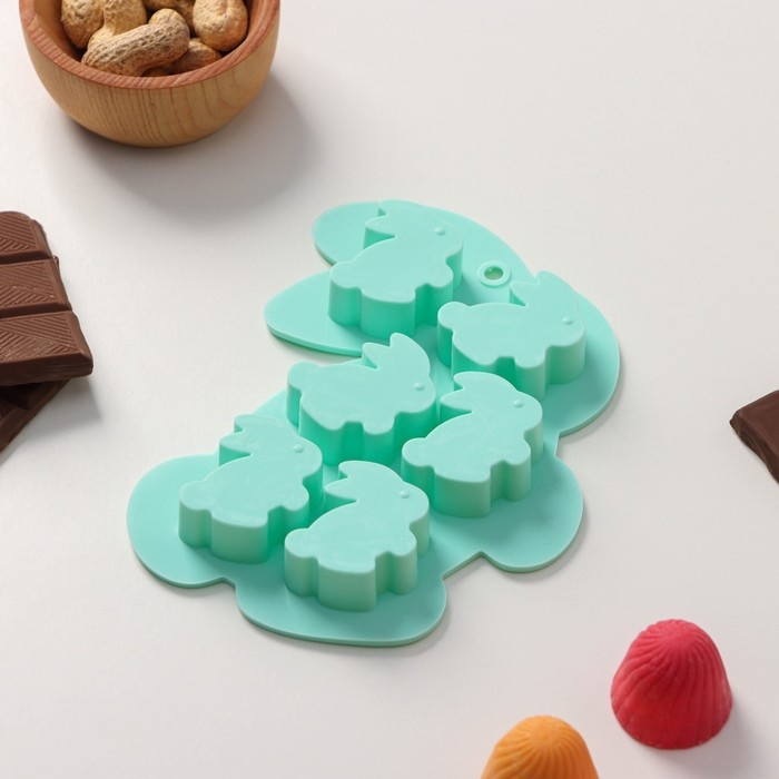 Форма для конфет и шоколада Доляна «Заяц», силикон, 15×11,5 см, 6 ячеек (3,8×3,5 см), цвет мятный