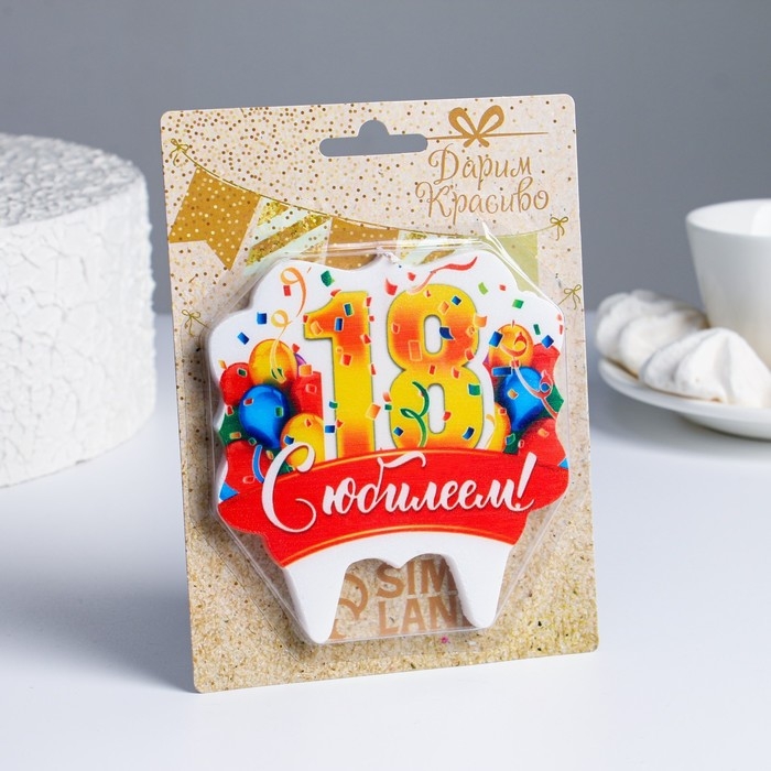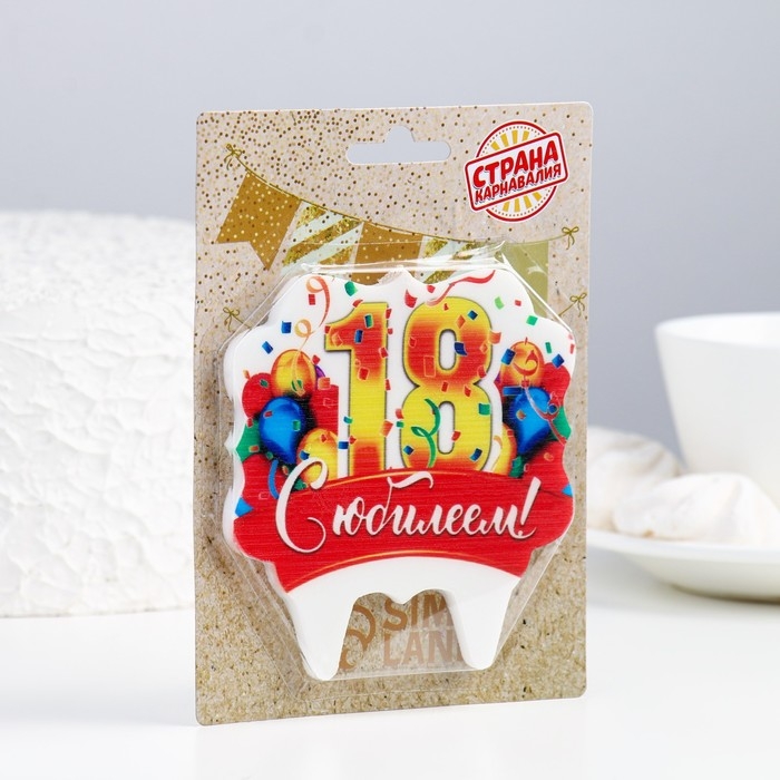 Свеча для торта юбилейная "18", золотая, 8 см