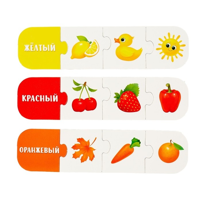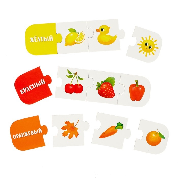 Собирая эти пазлы, ребёнок выучит цвета и научится складывать целое изображение из крупных деталей.