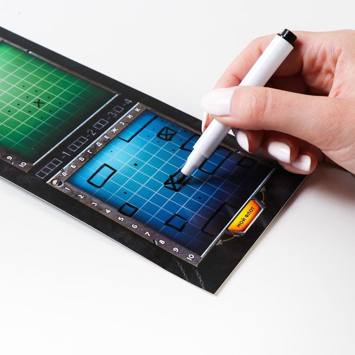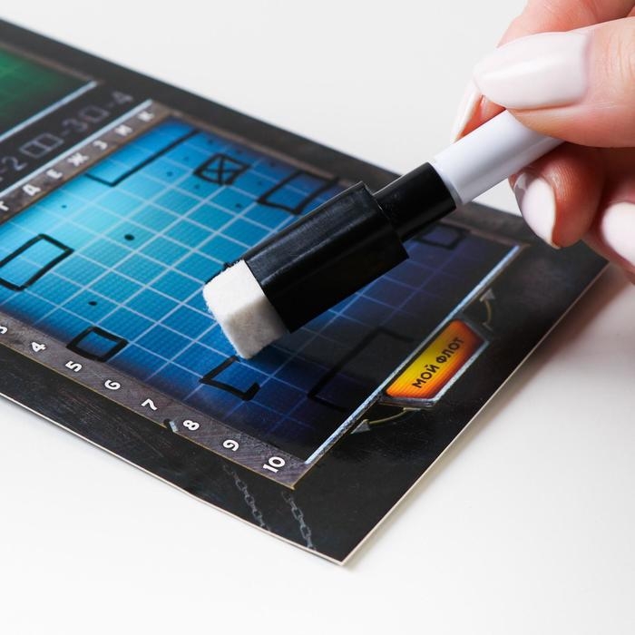 Настольная игра морской бой "Тихие воды", 2 стираемых маркера, 2 игровых поля
