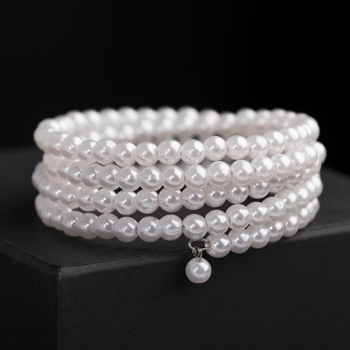 Браслет жемчуг «Невеста» бусины d=0,5, 4 ряда пружинкой, цвет молочный