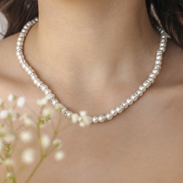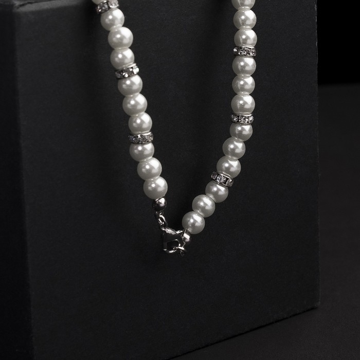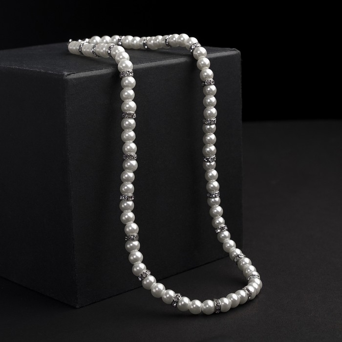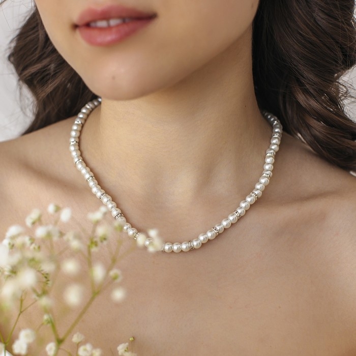 Бусы жемчуг «Невеста» со стразами, шар №4, цвет белый, L= 43,5 см