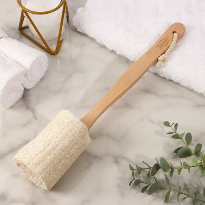 Мочалка с ручкой, люфа, гладкая, 33х7 см