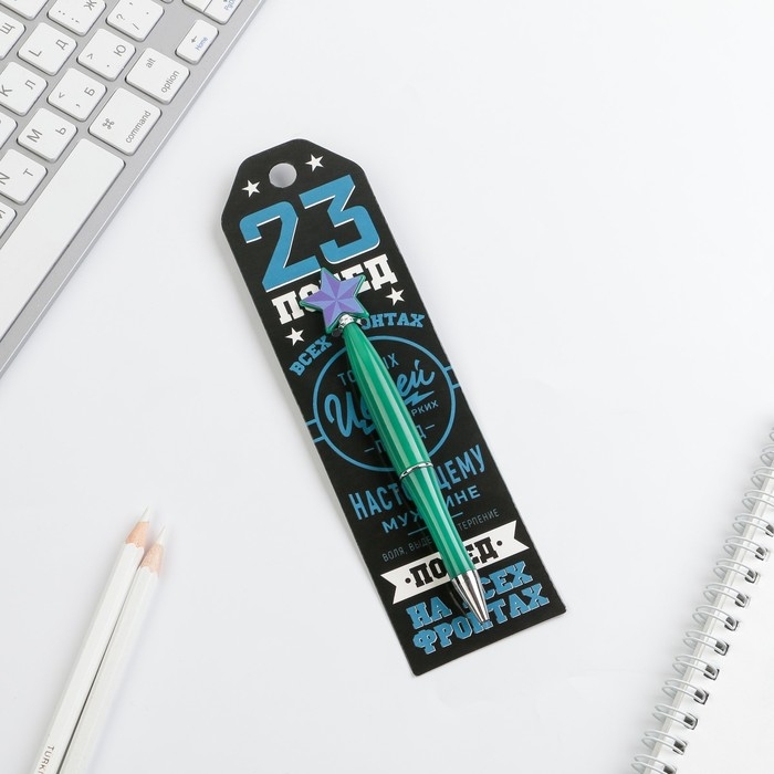 Ручка шариковая синяя паста, пластиковая со звездой "С 23 Февраля"