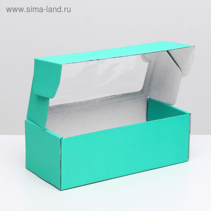 Коробка самосборная, с окном, мятная, 16 х 35 х 12 см МИКС