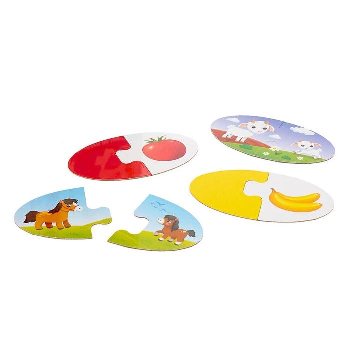 Собирая эти пазлы, ребёнок узнает больше об окружающем мире и научится складывать целое изображение из двух частей.