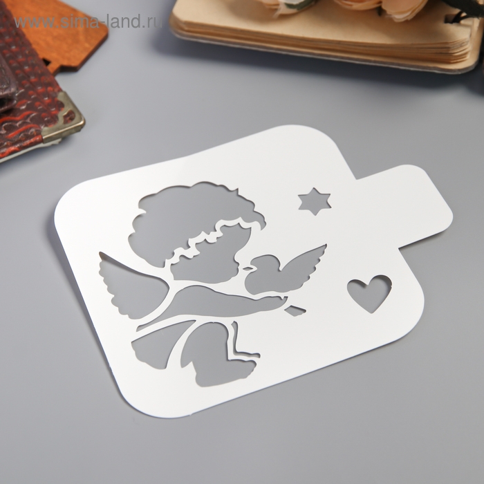 Трафарет пластик "Ангел малыш с голубем"9х9 см