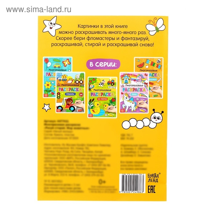 Картинки в этой книге можно раскрашивать много-много раз. Скорее берите фломастеры и фантазируйте, раскрашивайте, стирайте и раскрашивайте снова!