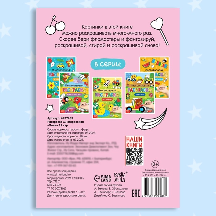 Раскраска многоразовая «Рисуй-стирай. Пони» 12 стр.