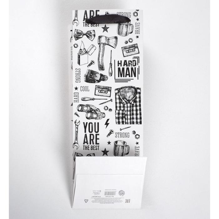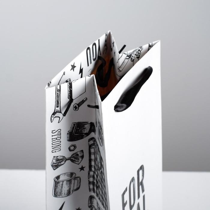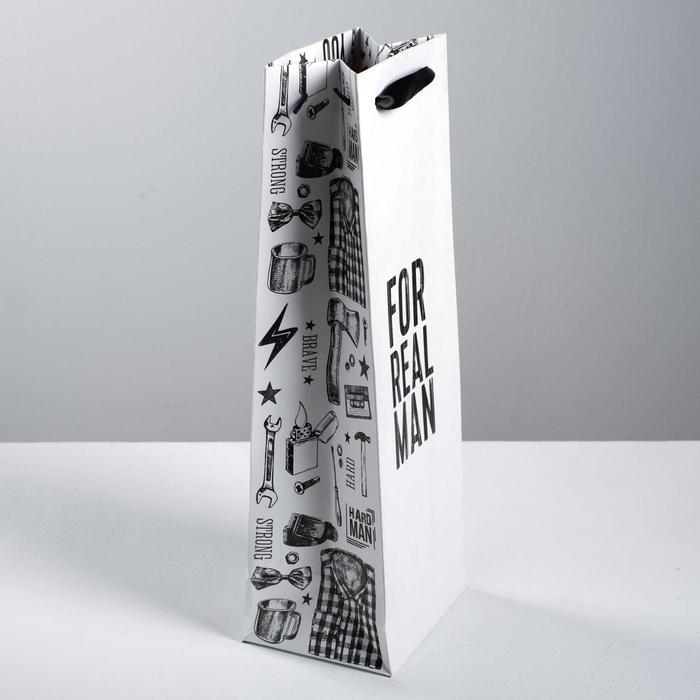 Пакет подарочный под бутылку, упаковка, «For real man», 36 х 13 х 10 см