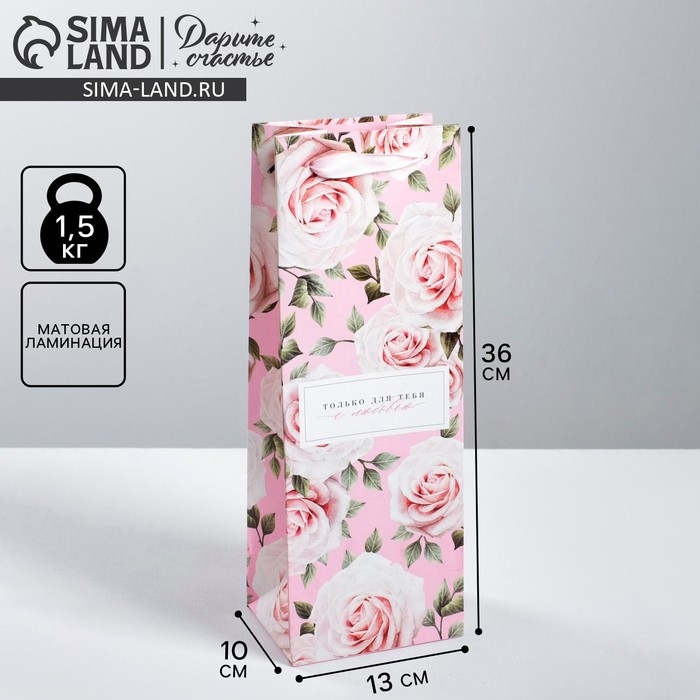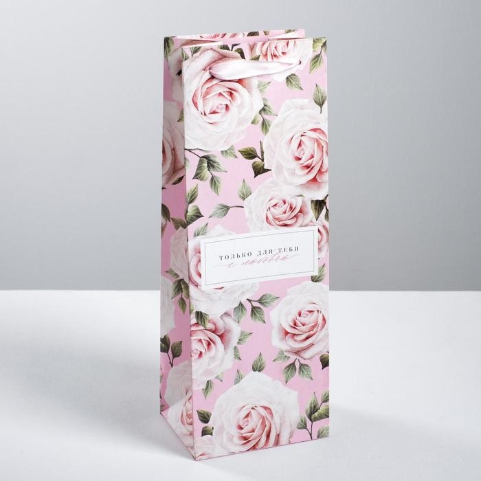 Пакет подарочный под бутылку, упаковка, «Только для тебя с любовью », 35 х 13 х 10 см