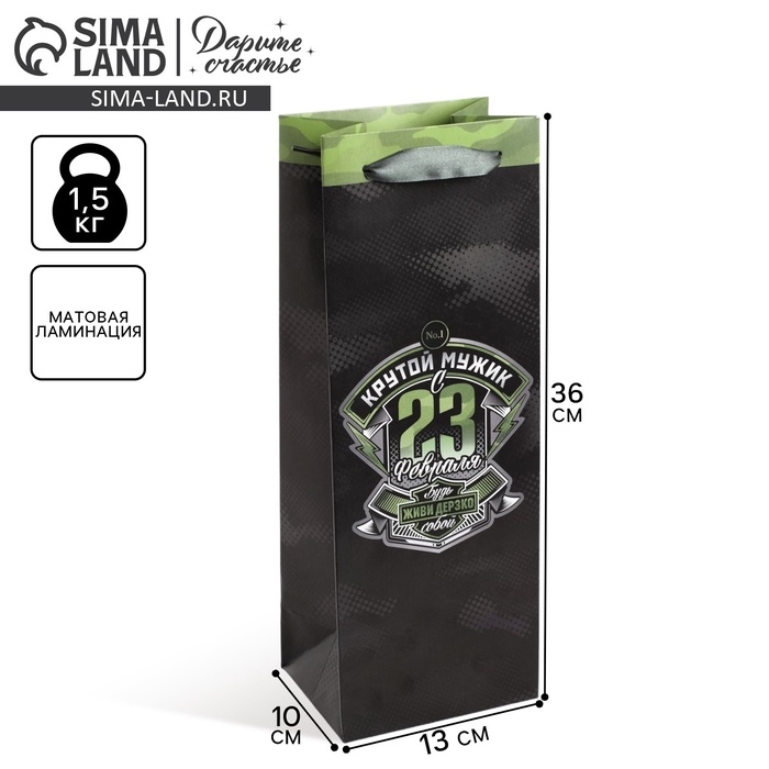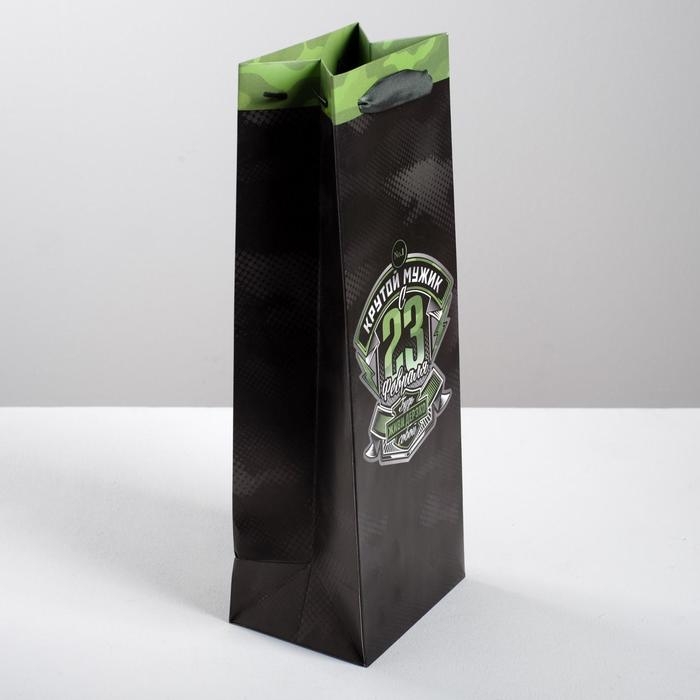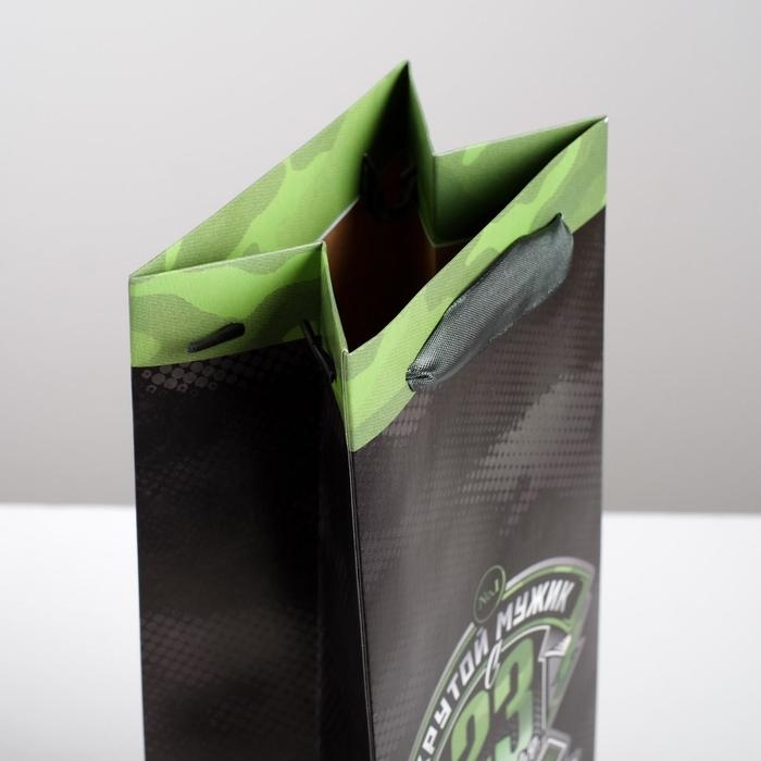 Пакет подарочный под бутылку, упаковка, «Крутой мужик», 36 х 13 х 10 см