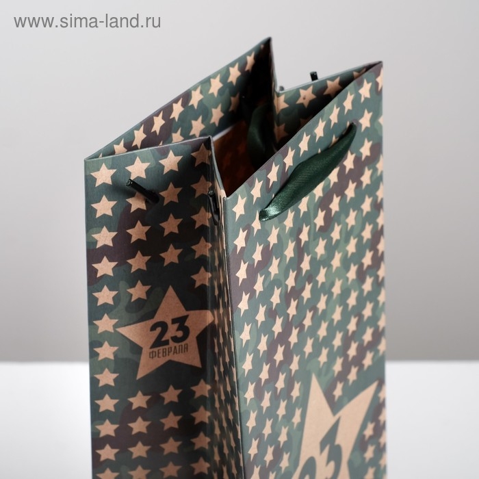 Пакет подарочный под бутылку, упаковка, «23 февраля», 36 х 13 х 10 см