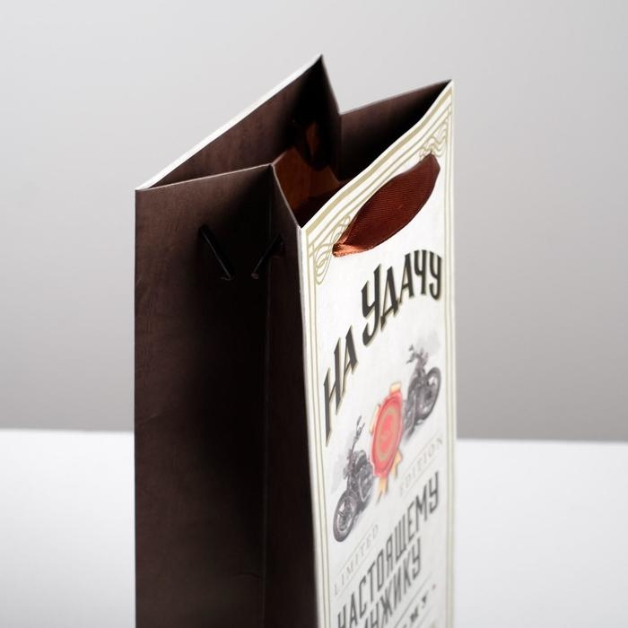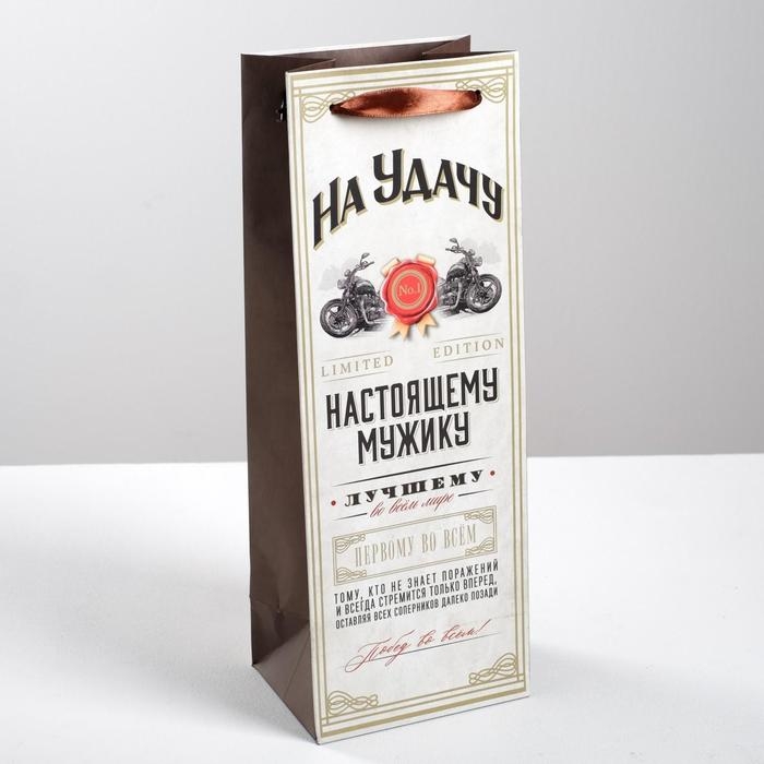Пакет подарочный под бутылку, упаковка, «Настоящему мужику», 36 х 13 х 10 см