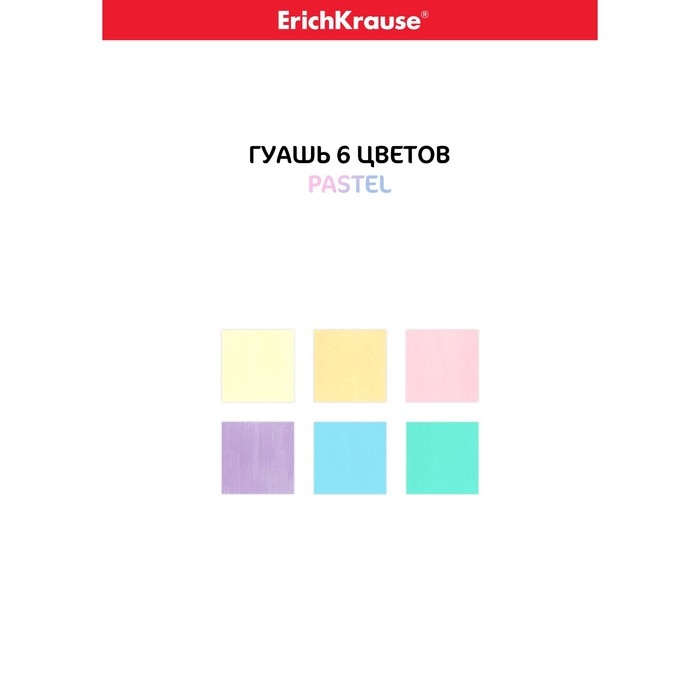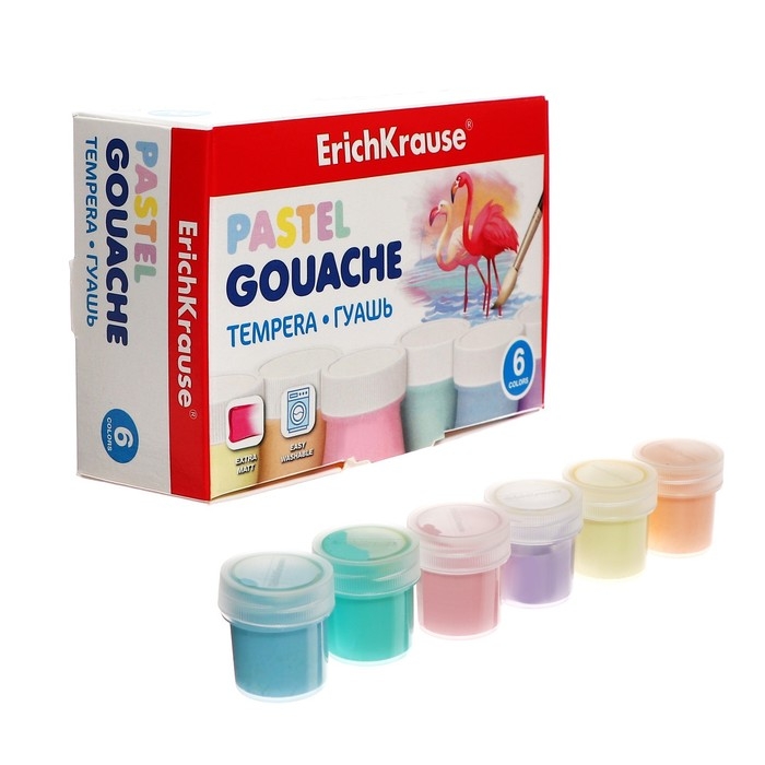 Гуашь 6 цветов х 20 мл, ErichKrause Pastel, пастельная палитра
