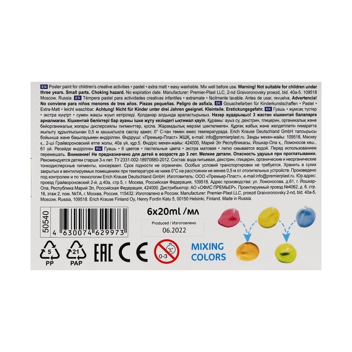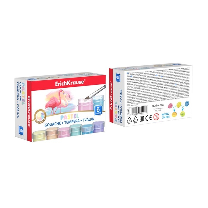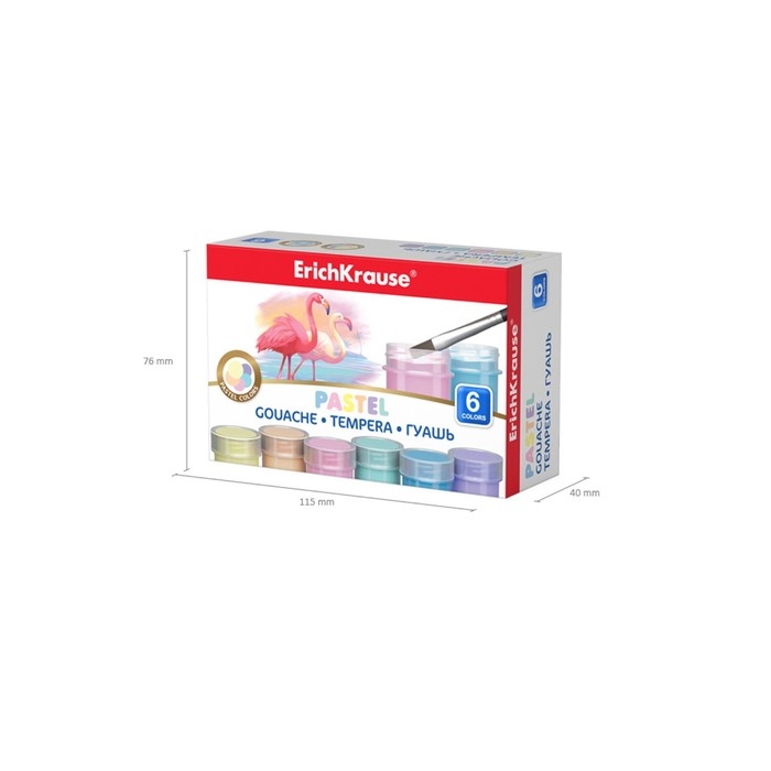 Гуашь ErichKrause® отличает высокая кроющая способность краски. Цвета насыщенные, глубокие, отлично перекрываются и образуют экстра матовую бархатистую поверхность по мере высыхания краски. При этом сохраняется яркость и насыщенность тона, краски ложатся ровно, не осыпаются. Хорошо разводится и размывается водой, легко набирается на кисть. Пастельная гуашь ErichKrause® идеально подходит для декорирования рисунка нежными трендовыми цветами.