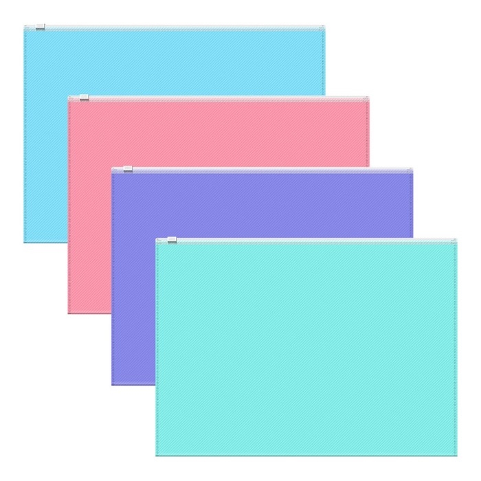 Папка-конверт "Полоска - сеточка" А4, на молнии, 23 х 34 см, МИКС