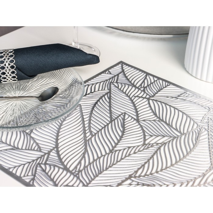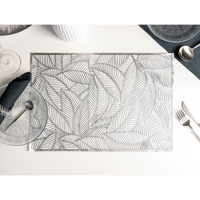 Салфетка сервировочная на стол Доляна «Листопад», 45×30 см, цвет серебряный