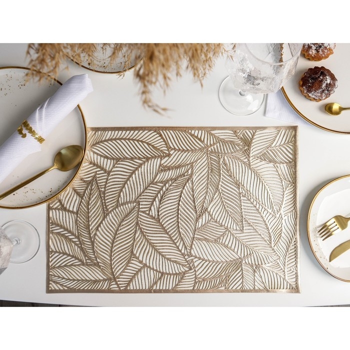 Салфетка сервировочная на стол Доляна «Листопад», 45×30 см, цвет золотой