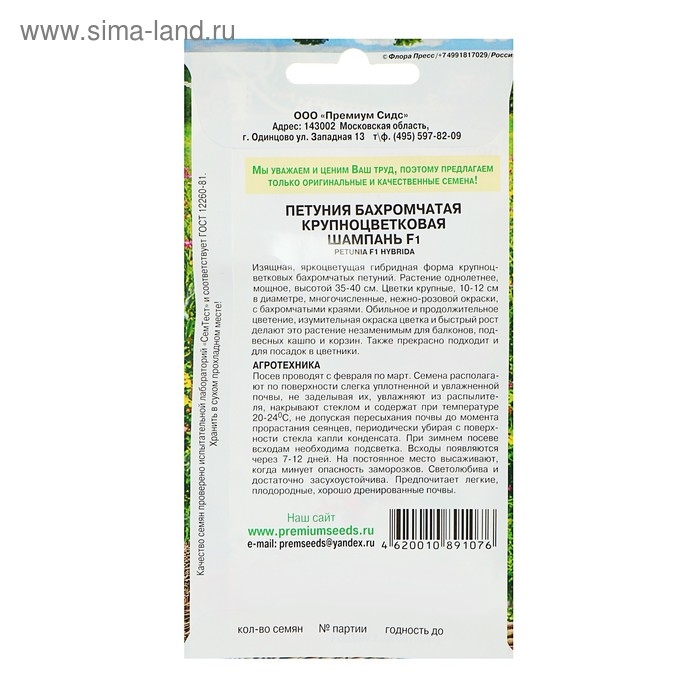 Семена цветов Петуния бахромчатая, крупноцветковая "Шампань" F1