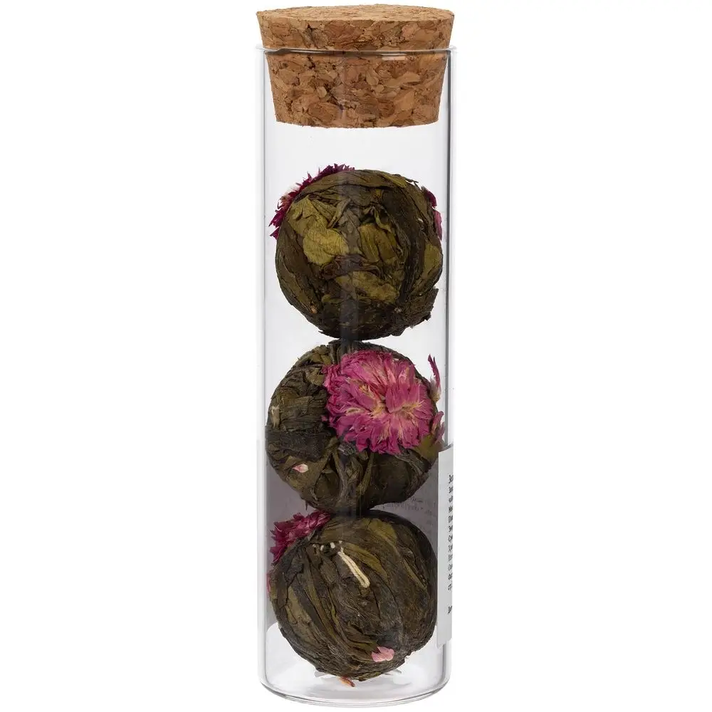 - связанный зеленый чай с цветами «Нефритовый Лотос» (состав: зеленый чай сенча, цветы хризантемы), вес 25 г — благодаря особой технологии скрутки чай, словно цветок, распускается в чайнике или чашке, при заваривании рекомендуем использовать прозрачную стеклянную посуду;