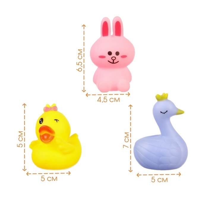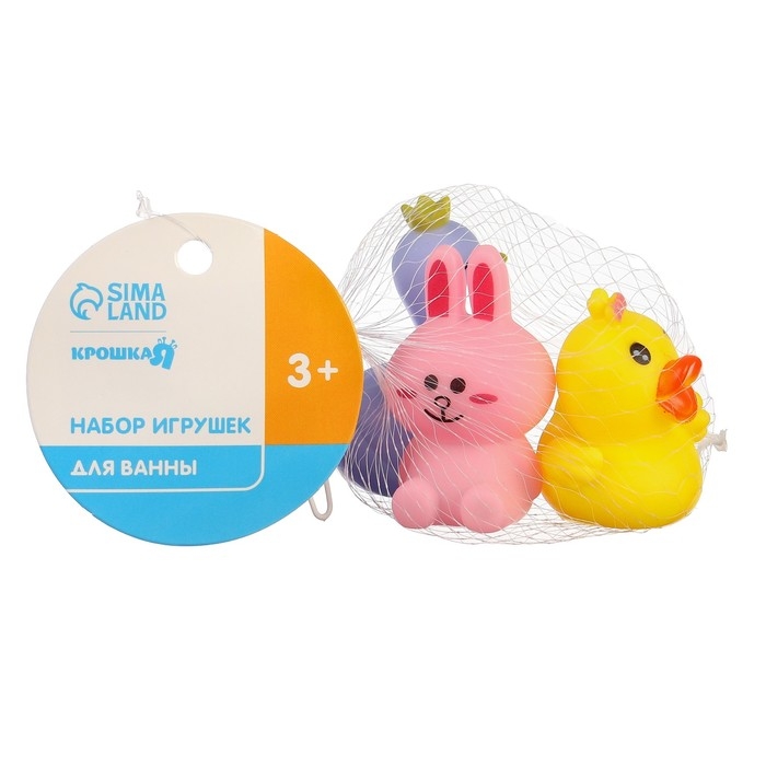 Набор резиновых игрушек для ванны «Давай дружить», с пищалкой, 3 шт, Крошка Я