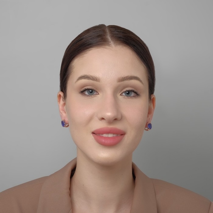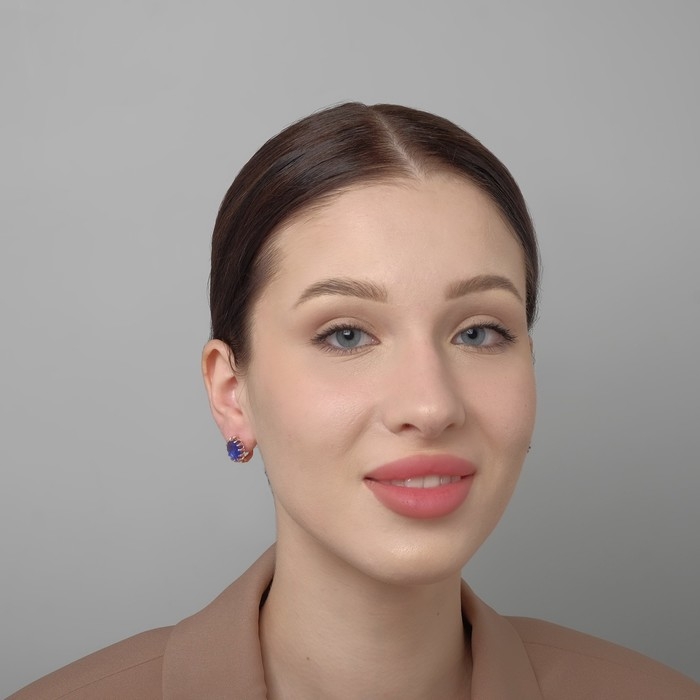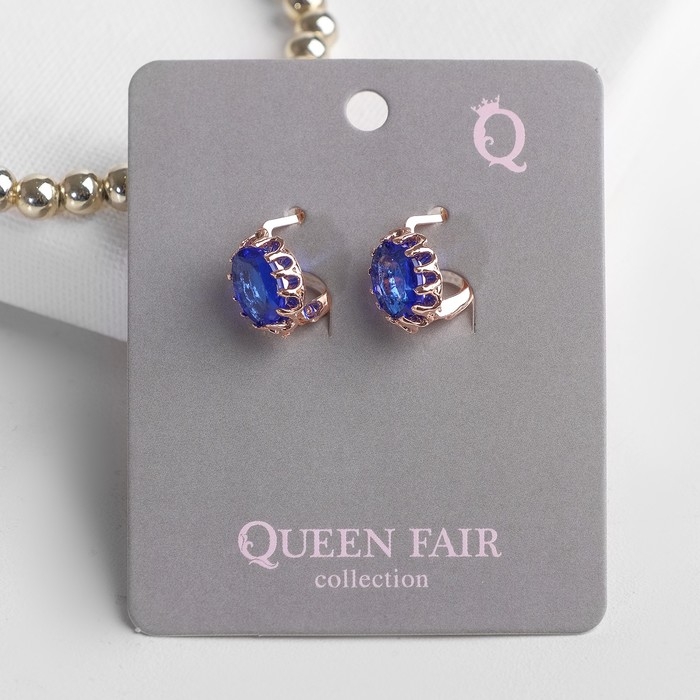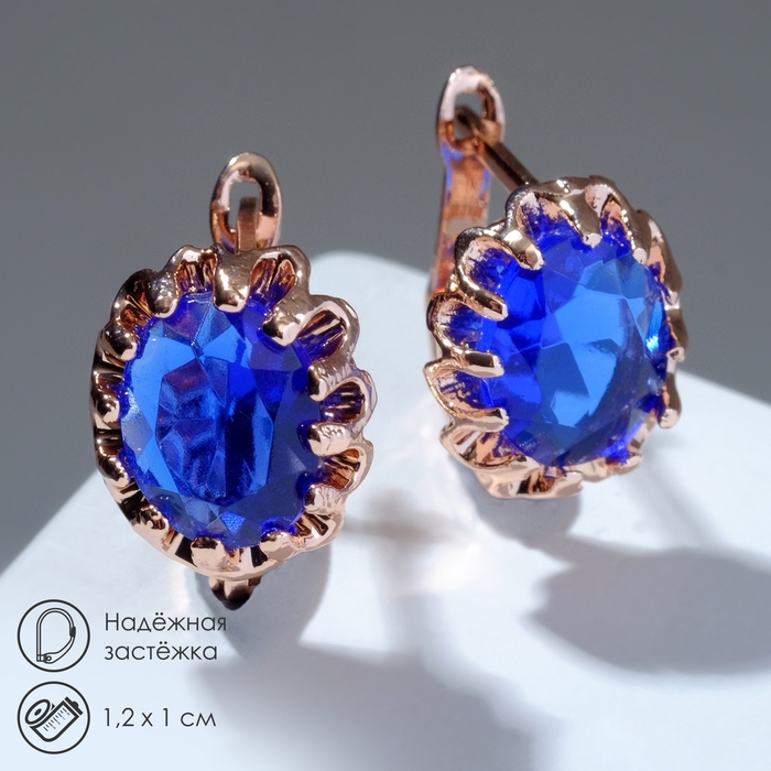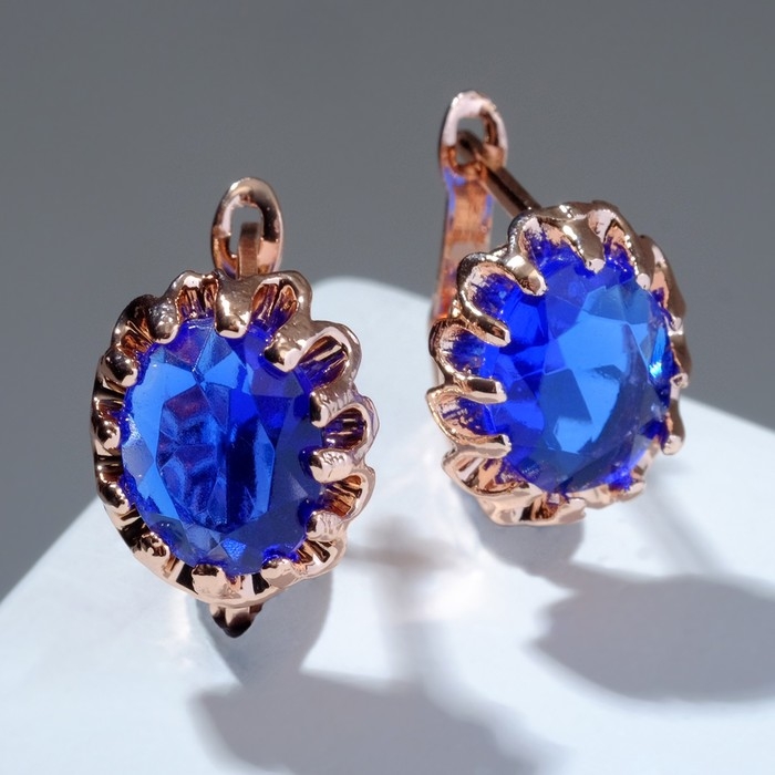 Серьги со стразами «Эдель» овал кружево, цвет синий в розовом золоте