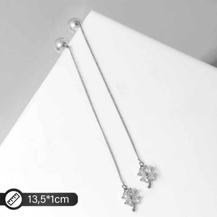 Серьги с жемчугом «Цепочки» цветок и бусина, цвет белый в серебре, шар №10