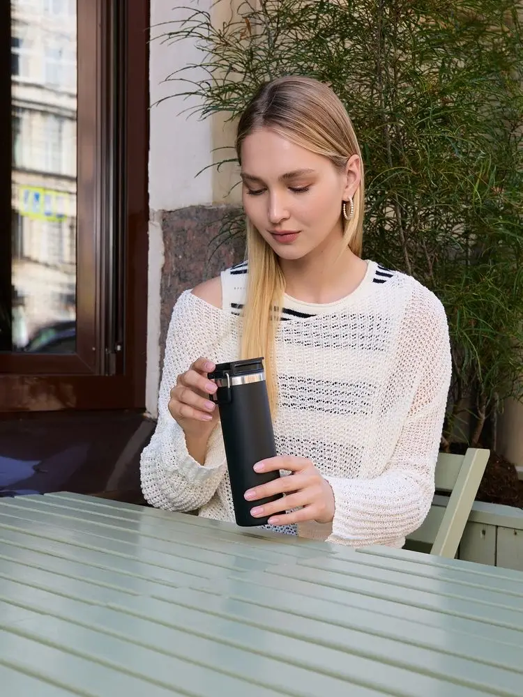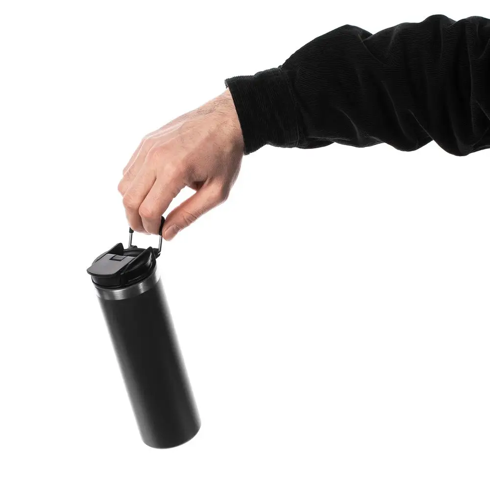 Лаконичный дизайн с ровным цилиндрическим корпусом — специально для круговой печати и гравировки, достаточный объем и привлекательная деталь в виде подвижной квадратной ручки для переноски.
