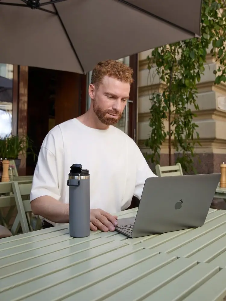 Лаконичный дизайн с ровным цилиндрическим корпусом — специально для круговой печати и гравировки, достаточный объем и привлекательная деталь в виде подвижной квадратной ручки для переноски.