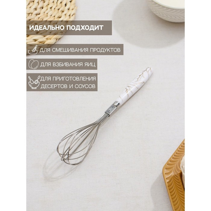 Венчик для взбивания Доляна «Каррарский мрамор», 24,5×4,5 см, цвет белый