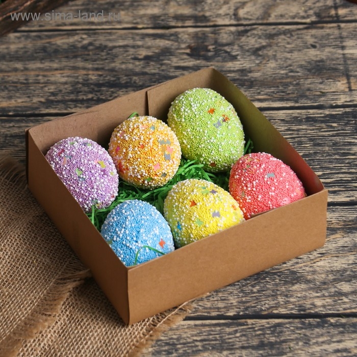 Декор пасхальный "Яйцо посыпка бабочки в травке" набор 6 шт яйцо 5х7 см