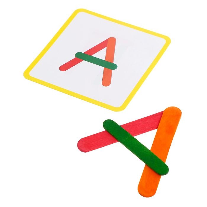 Вот так в процессе игры ребёнок познакомится с буквами, запомнит их произношение и правописание. Используйте разные варианты игры, сортируйте палочки по цвету или счёту, стройте геометрические фигурки. Складывайте из них картинки и развивайте память малыша.