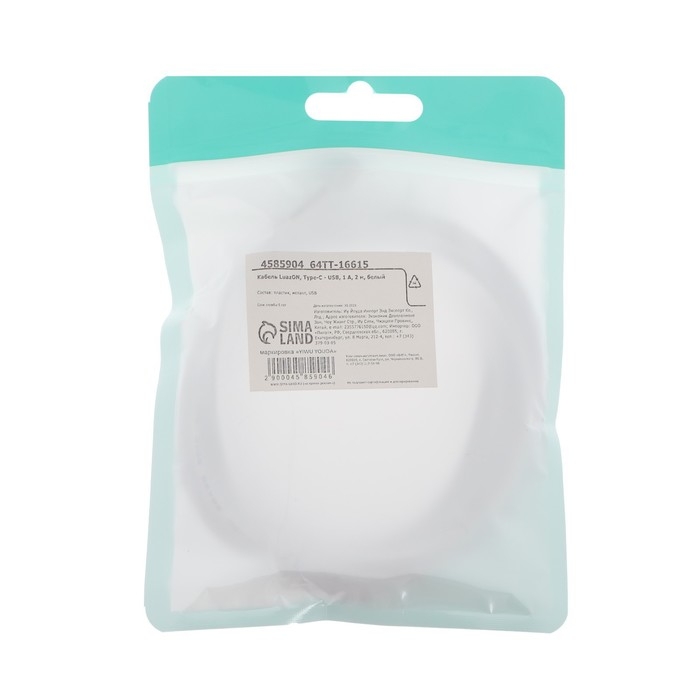 Кабель LuazON, Type-C - USB, 1 А, 2 м, белый
