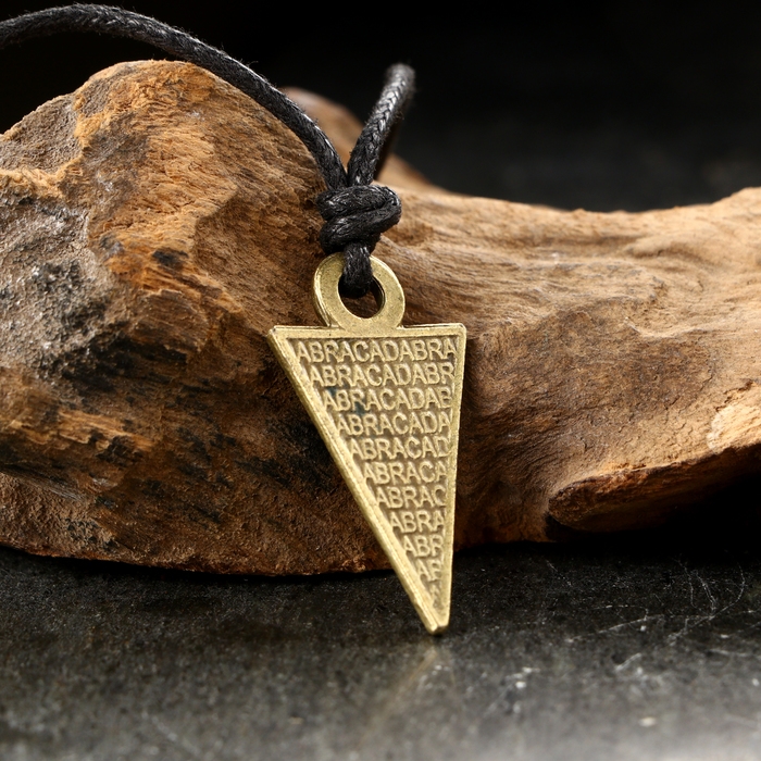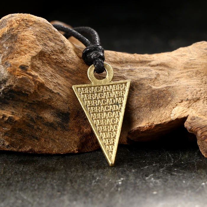 Магическая гностическая формула (ок. I в. н.э.). Берёт начало в традиции «Alikwot» – воспевания звуков, которые своими вибрациями увлекают в возвышенные состояния духа (трансы) и очищают. Абракадабра, написанная и выговариваемая «в системе исчезания» – от полного названия до одной буквы, – удаляет болезни, злую участь, нищету и все злые энергии. При ношении амулета этому способствует форма маятника и гравировка на нём.