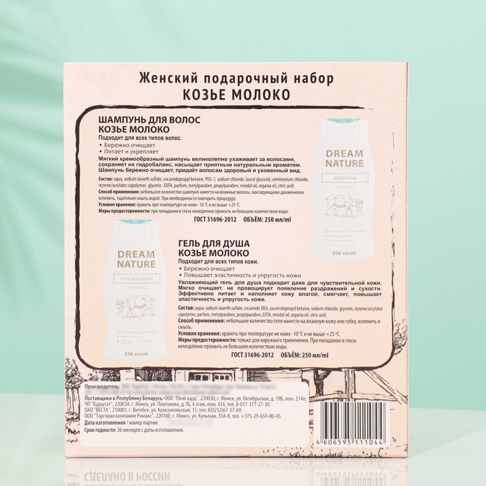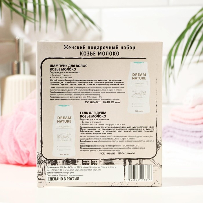 Подарочный набор косметики для женщин Dream Nature «Козье молоко»: шампунь, 250 мл + гель для душа, 250 мл
