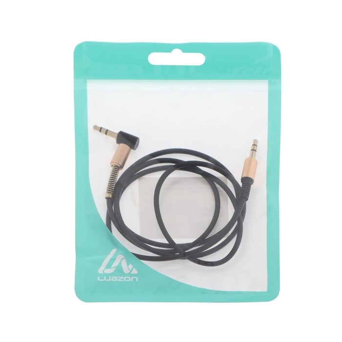 Кабель аудио AUX Luazon, Jack 3.5 мм(m)-Jack 3.5 мм(m), угловой, металл пружина, 1 м, черный